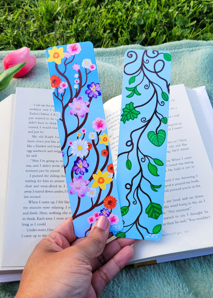 - Set Includes: 1 floral bookmark and 1 vine bookmark