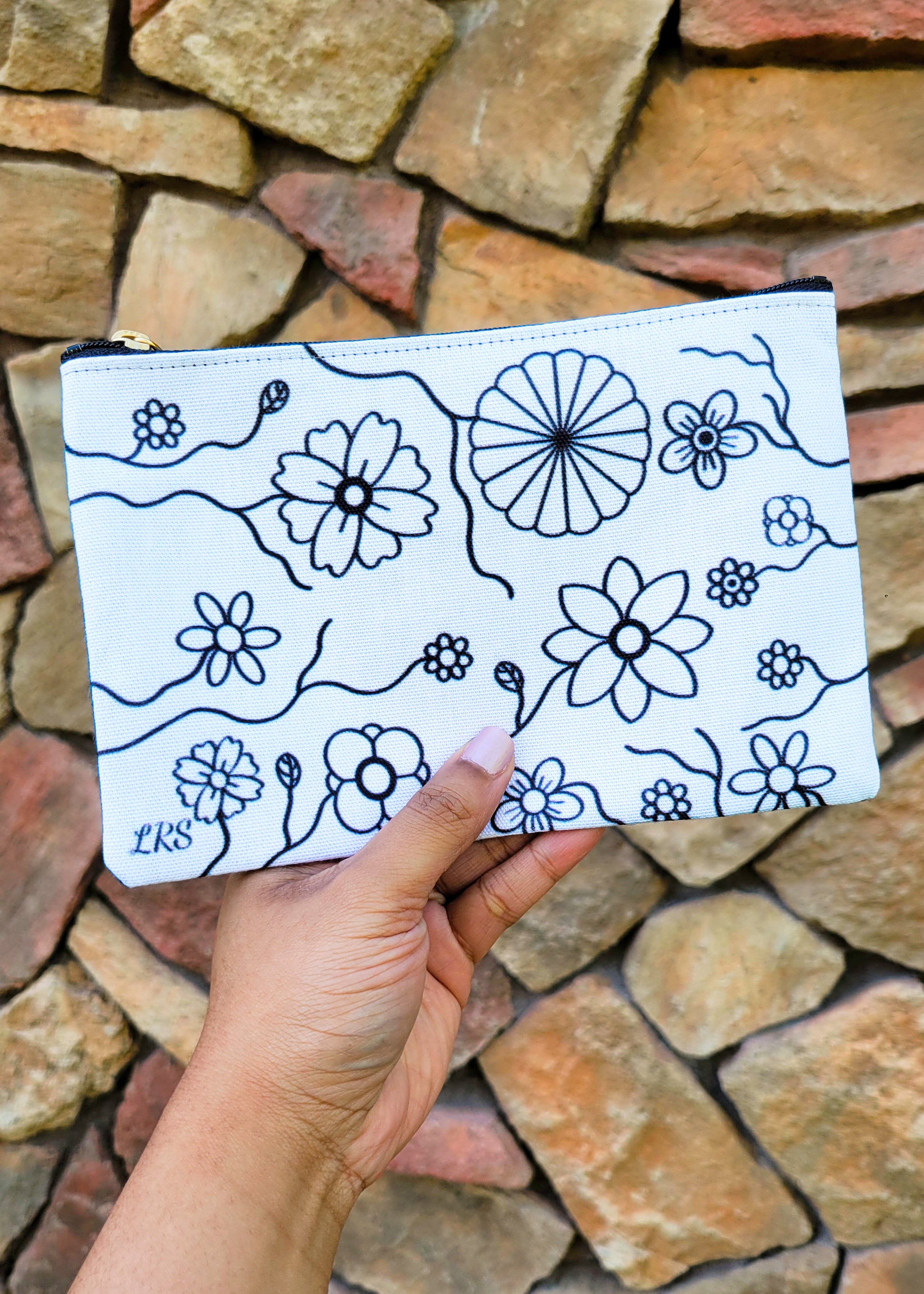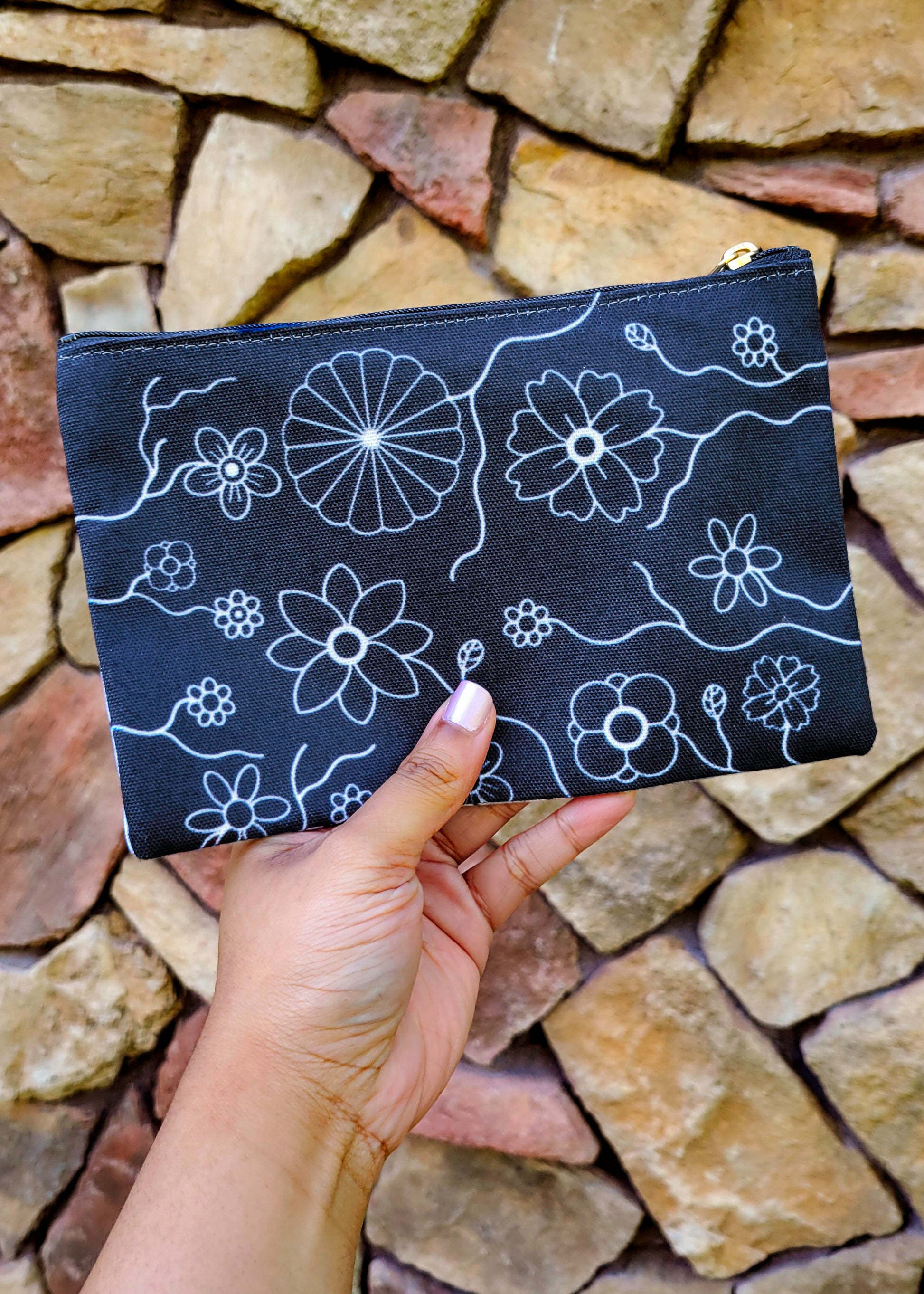 - One side has a floral white background and black line art, and one side has a black background and white line art